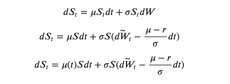 We found a measure in which the drift turns from the unknown function μ into the risk-free interest rate r.