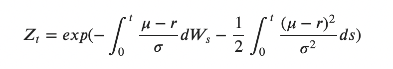 It’s easy to check that the process Zₜ is indeed a positive martingale and satisfies Eᴾ[Zₜ] = 1: