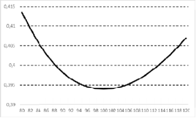 The volatility smile (volatility smile) is a graphical representation of the dependence of implied volatility on strike for options with the same time to expiration. Typically, implied volatility tends to increase for both deep in-the-money and deep out-of-the-money options, creating a shape resembling a smile.